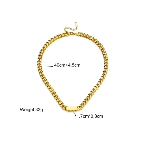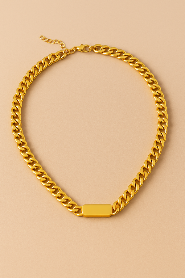 💫 Una cadena con presencia y carácter, ideal para grabar tu inicial o una palabra de poder. Disponible en acero inoxidable o chapado en oro 18K.